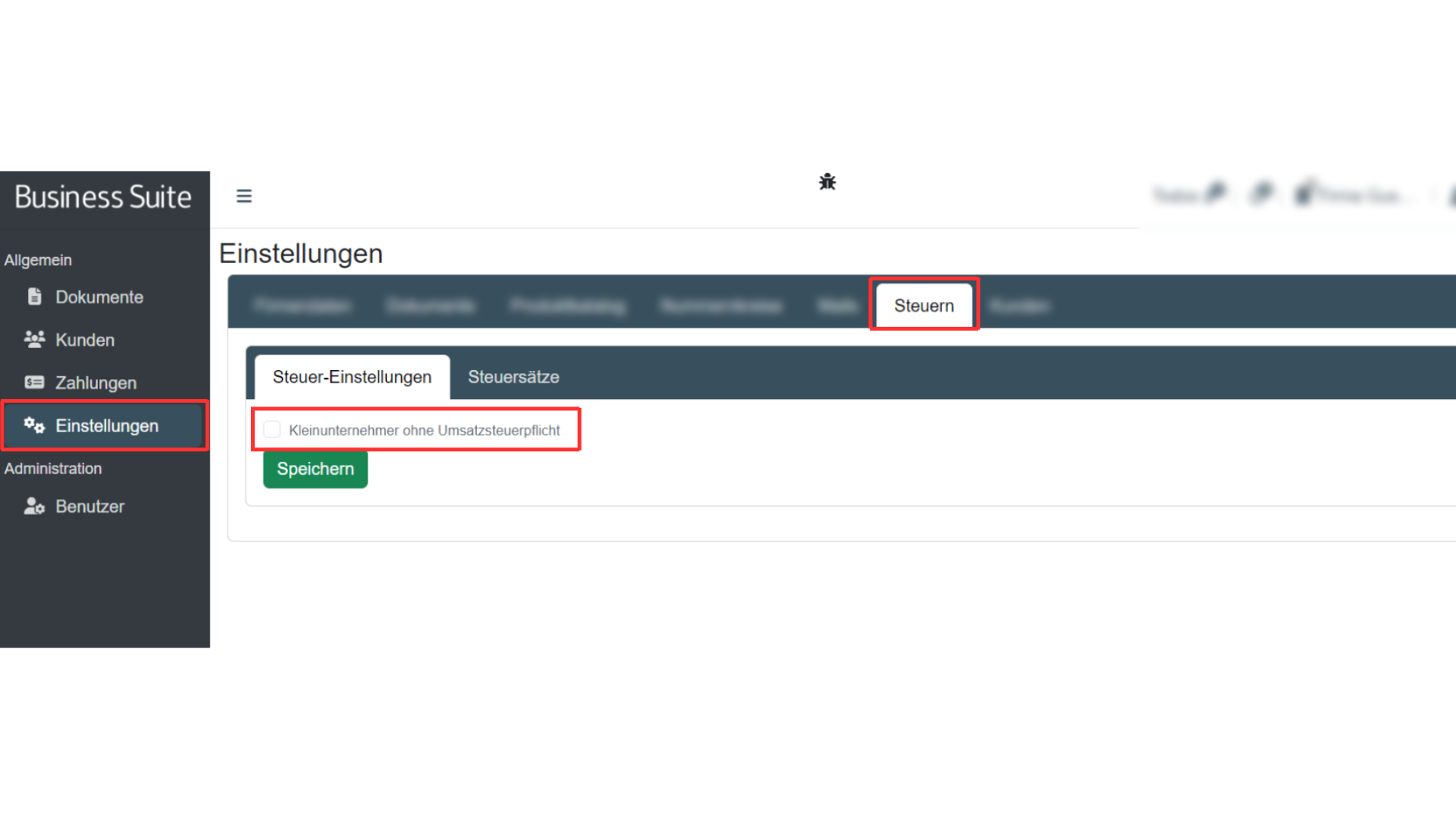 Du bist Kleinunternehmer*in und nicht Umsatzsteuerpflichtig? Dann kannst du hier das entsprechende Häkchen setzen und den passenden Text (wie z.B. „Steuerbefreiter Kleinunternehmer gem. § 6 Abs. 1 Z 27 UstG“) hinzufügen. Dies erscheint dann automatisch auf deinen Rechnungen.