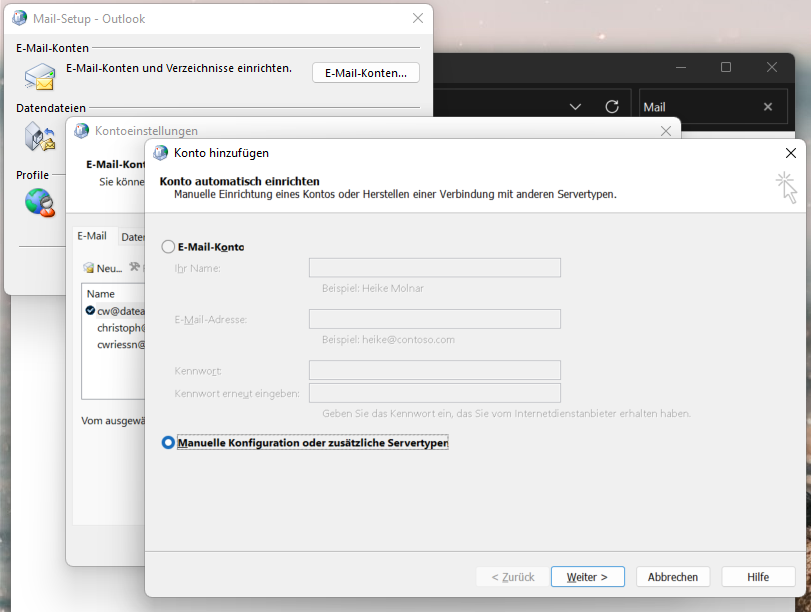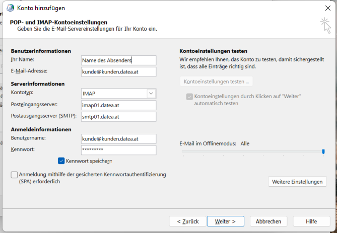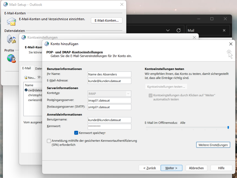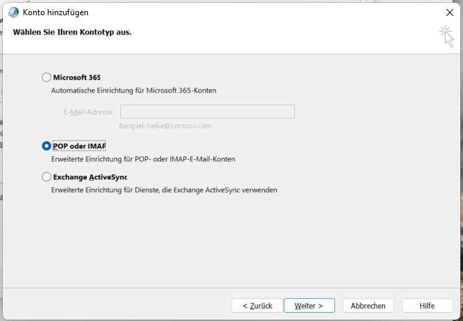 Einrichtung der Mailbox in Office 365 Outlook (IMAP, SMTP unter Windows 10/11)